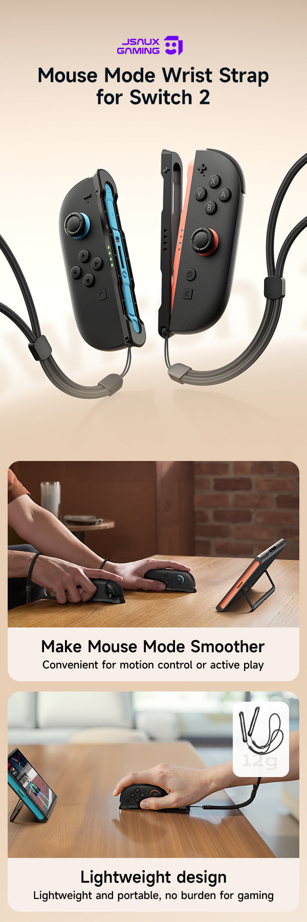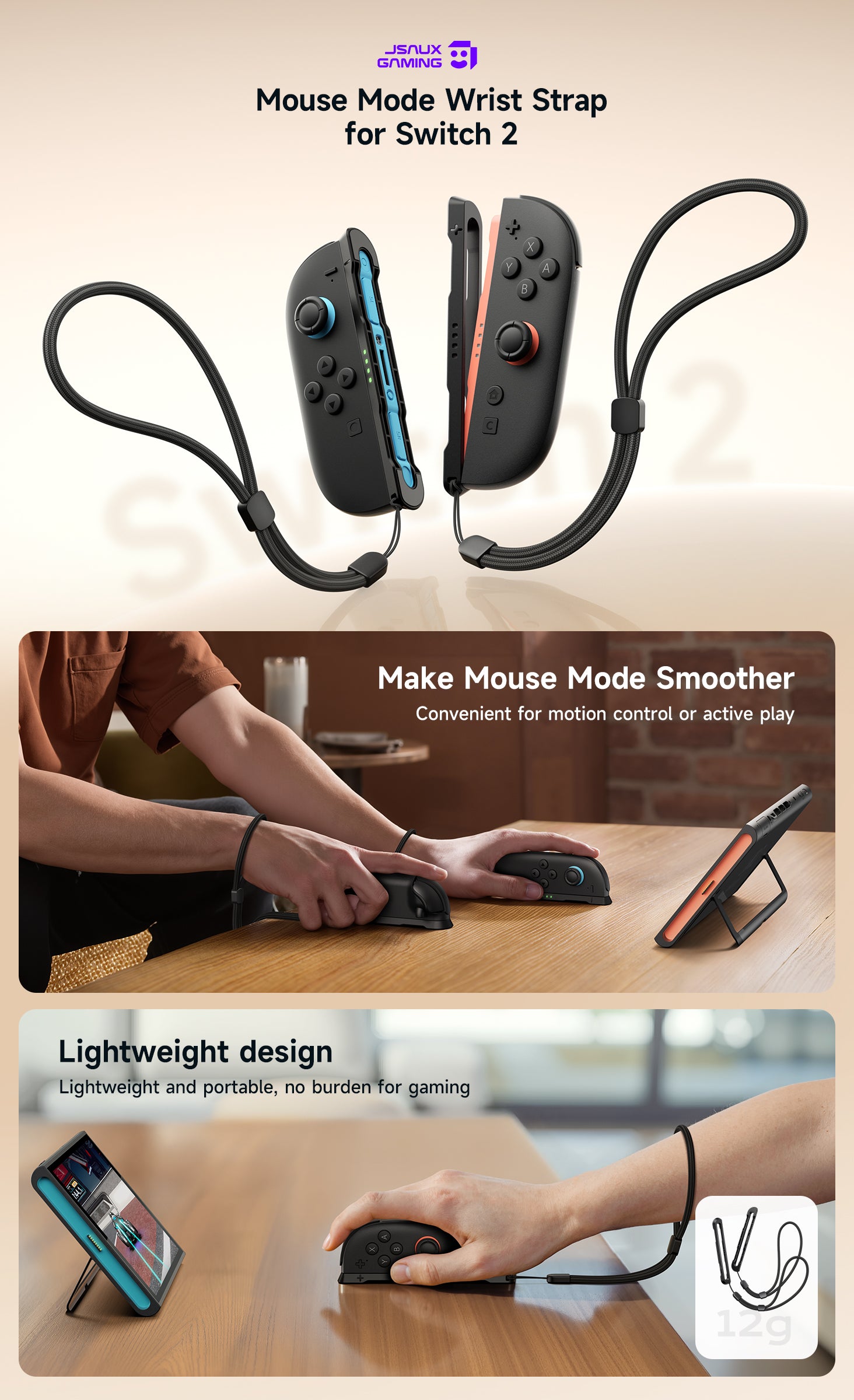 - 【Reduce wrist strain, play for extended periods without fatigue】:Ergonomic wrist straps distribute force evenly, alleviating wrist discomfort caused by prolonged use, so you can enjoy extended gaming sessions without feeling fatigued.