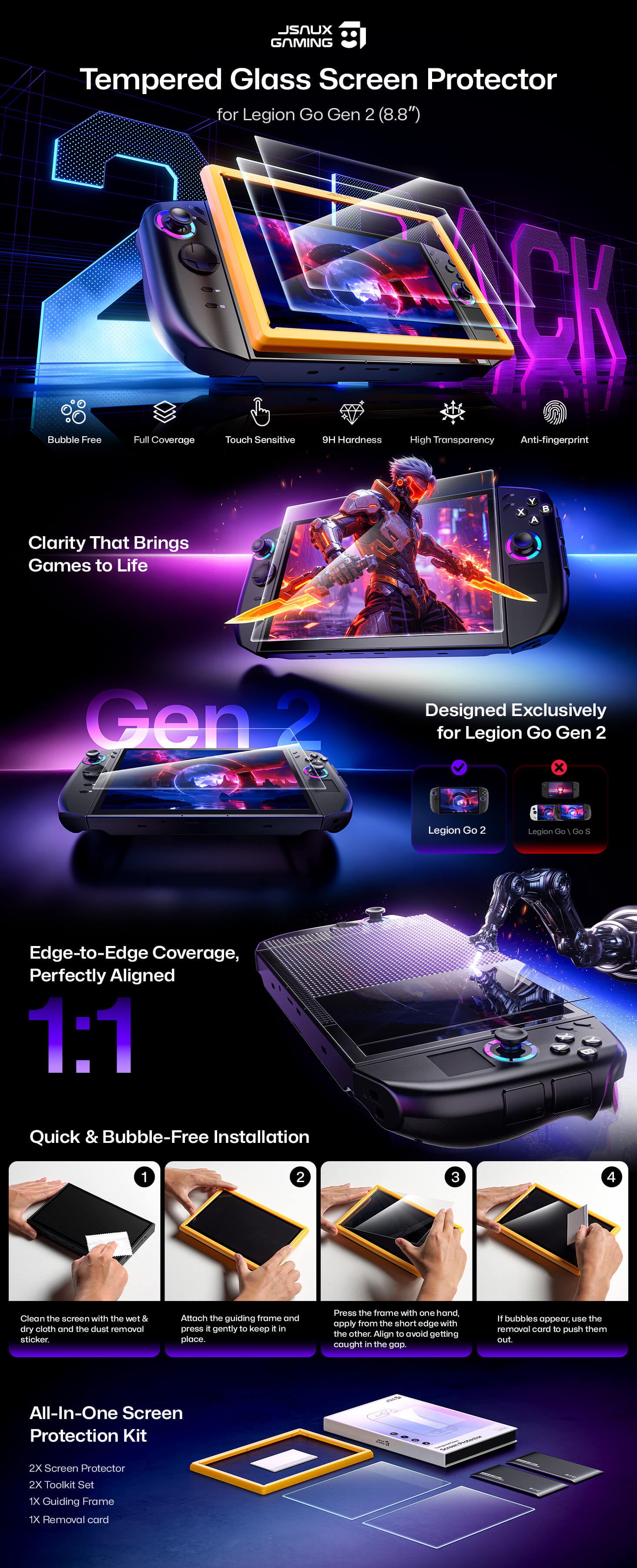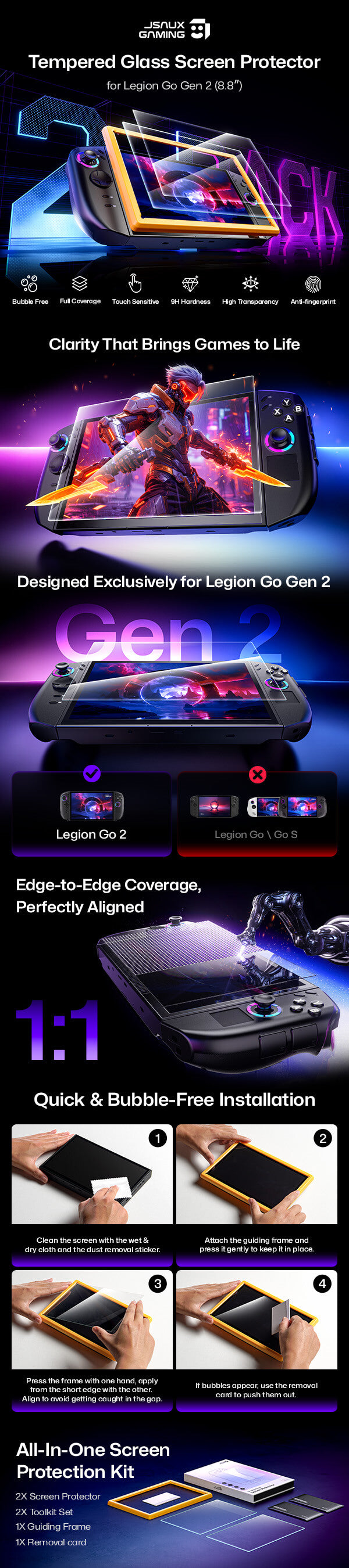 - 【Only for Legion Go 2 (8.8-inch)】This screen protector is designed exclusively for Lenovo Legion Go 2 8.8". NOT compatible with any other model