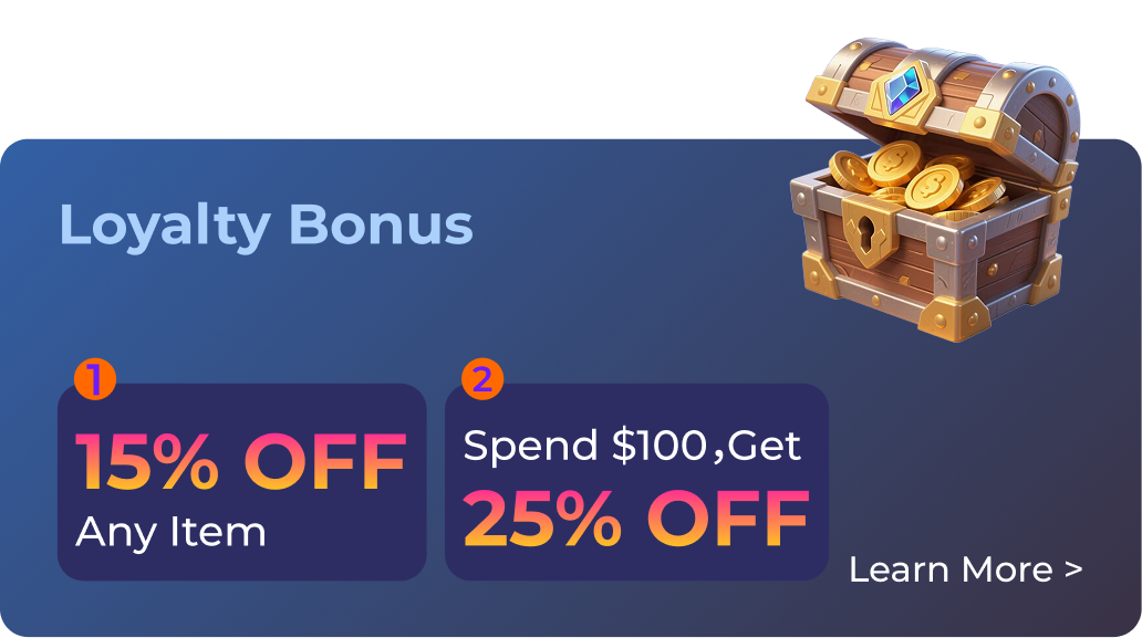 Loyal customers who placed two or more orders before February 25, 2026 are eligible for exclusive discounts: 15% OFF on any single item or 25% OFF on orders over $100.