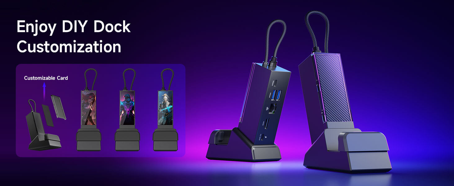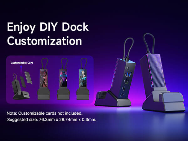 - 【DIY Customize Your Docking Station】Easily personalize your docking station by adding a custom card between the front cover and the dock. Just remove the cover, insert your card, and snap the cover back on. NOTE: Recommended card size is 3.00" x 1.13" x 0.01" (76.3mm x 28.7mm x 0.3mm). Custom cards NOT included