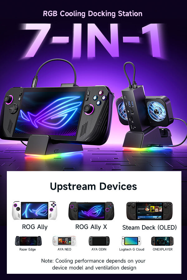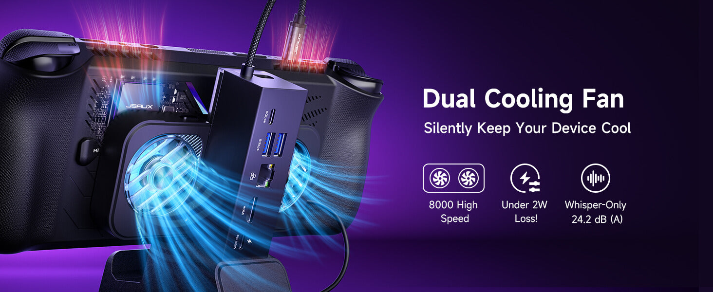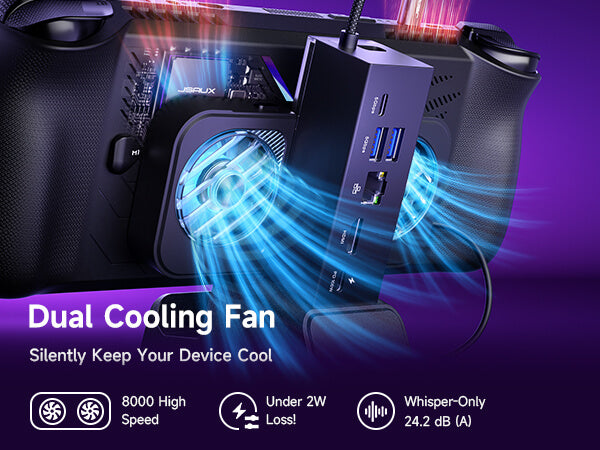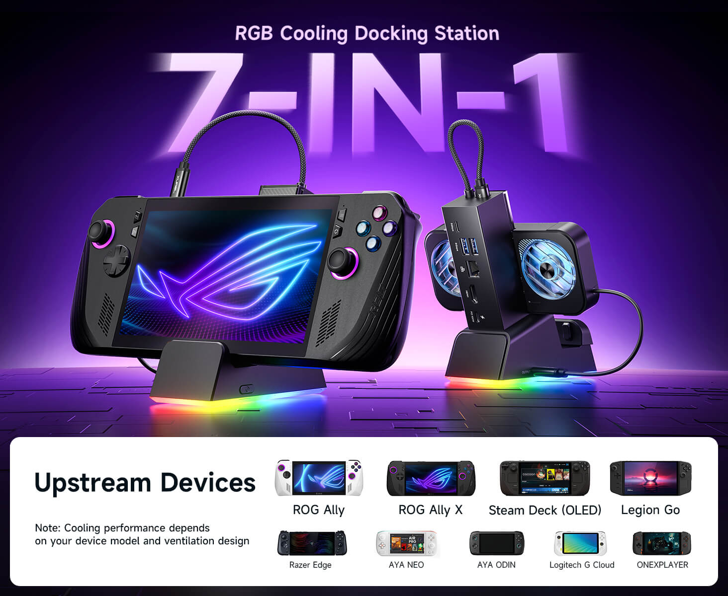 The real standout feature is the active cooling function: the dock is equipped with two RGB fans (removable) that can help lower the console's temperature by around 3–5 degrees, according to our tests and data from some other reviewers. It’s not a dramatic drop, but it can make a difference in terms of stability and performance under load.