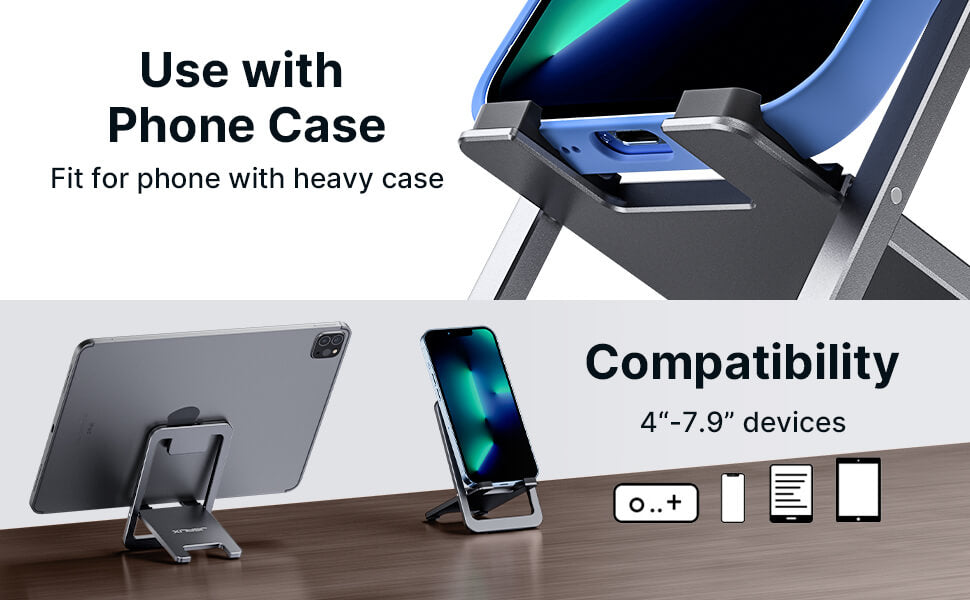 - Wide Compatibility: This cell phone stand is compatible with all 4-8 inch smart devices. For the full list of compatible devices check the product Specs below.