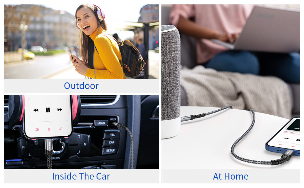 【Hi-Fi Quality & Portable】Built in Audio DAC Noise Reduction Chip, this Lightning to 3.5mm Aux Cable ensures stable and high fidelity audio. It supports up to 24bit/96Khz while others only support 16bit/48Khz. Thanks to the compact size, you can easily carry the Apple aux cable in your pocket, especially suitable for enjoying music while jogging or fitness, on the road or on the go.