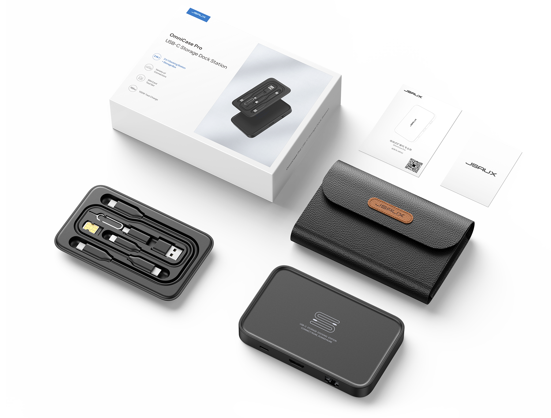 - JSAUX Exclusive Patent Design-Electronic Storage Function: Not only a Type-C Hub but also an Electronic Organizer. Comes with multiple types of cables and adapters, which can be conveniently taken out and connected to your devices. You will get a USB-C to USB-C Cable, a USB-C to Lightning Cable(MFI Certification, a USB-A to USB-C Female Adapter, a Micro USB to USB-C Female Adapter, an Eject Pin, and SIM card Slot.