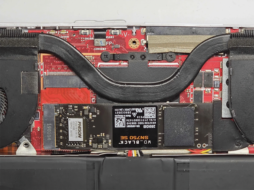 Using a 2230 to 2280 SSD adapter is not compatible with our provided heatsink. Additionally, the battery cable will be compressed beneath the adapter, which may affect performance and longevity.