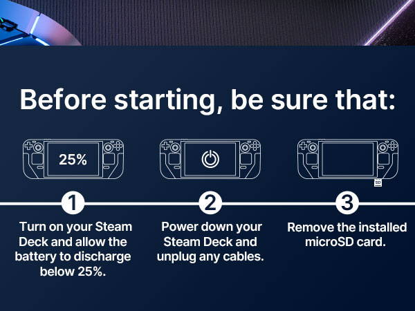 - The transparent shell case isn’t recommended for users without experience in DIY and/or disassembling electronic devices. We strongly recommend carefully reviewing the iFixit videos if you choose to install it or seek the services of a professional. Any equipment malfunction caused by the disassembly of the Deck, but not by this product, shall be borne by the user.