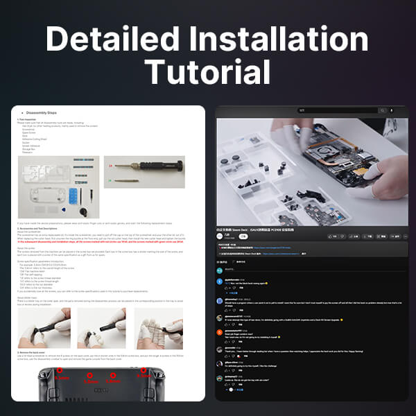 ⚠️Notes: The Transparent Front Cover isn’t recommended for users without experience in DIY and/or disassembling electronic devices. We strongly recommend carefully reviewing the Installation videos and Text if you choose to install it or seek the services of a professional. The user shall bear any equipment malfunction caused by the disassembly of the Steam Deck, but not by this product.