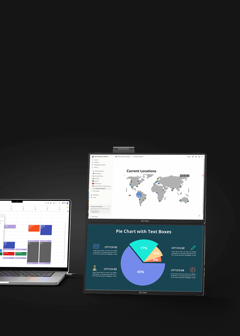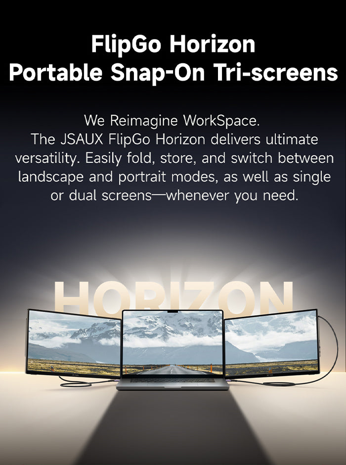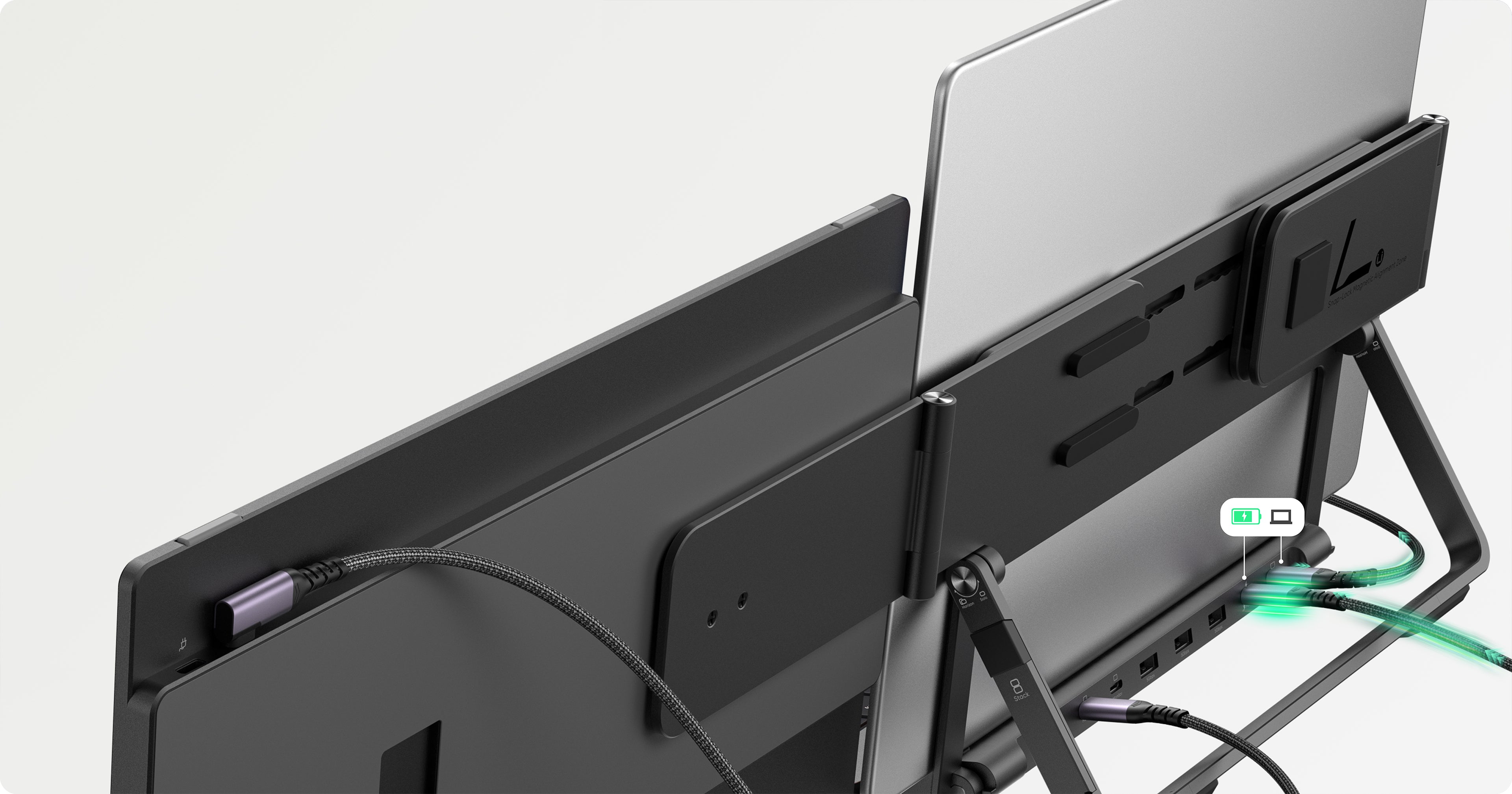 告别传统的三屏便携设置。Snap Stand 不仅轻巧便携,更采用智能设计,提供单屏、双屏和三屏配置,满足您的多样化需求。