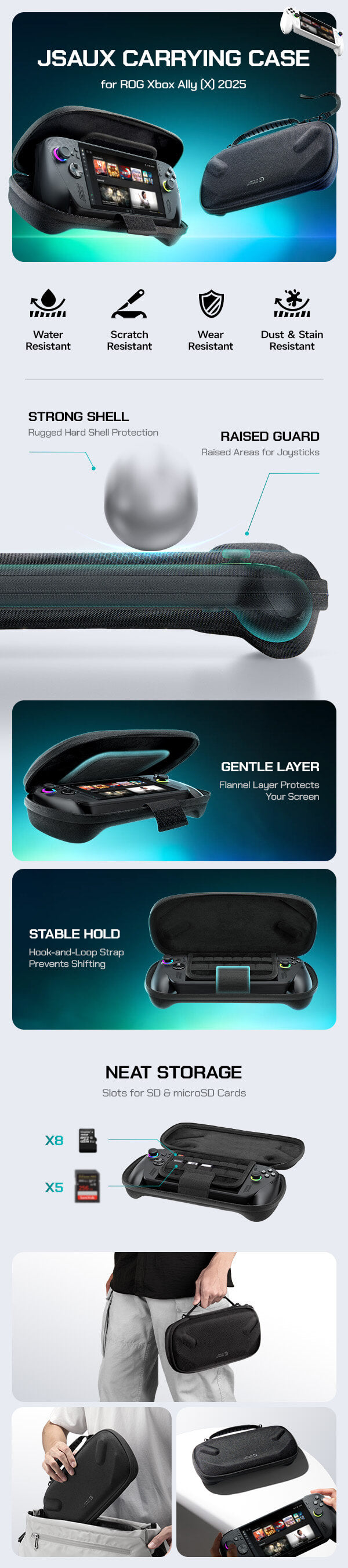 - 【Tailored Protection for ROG Xbox Ally (X)]】This carrying case is custom-built for ROG Xbox Ally/Ally X, giving your console a perfect fit. It shields your handheld from daily bumps, scratches, and dust while keeping it lightweight and portable.